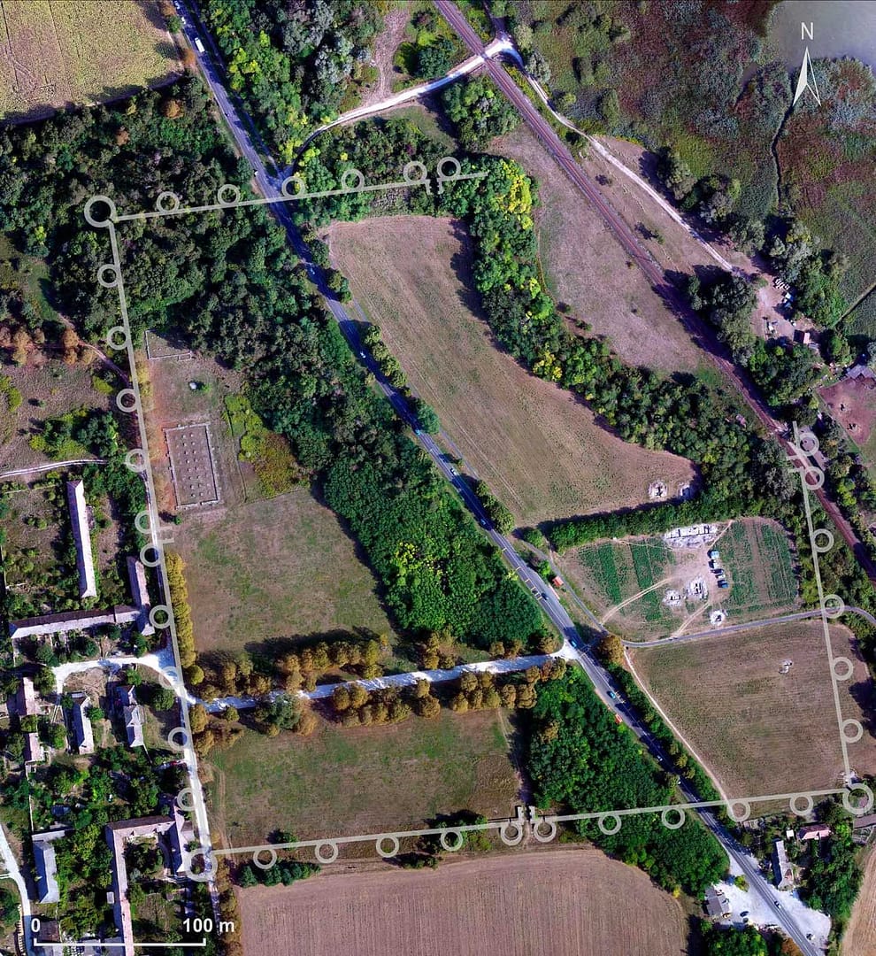 Three of its gates have been discovered. The fourth gate could have been situated at the eastern wall. The inner buildings had stood along the axis of the roads connecting the gates: a Horreum/Granary (15), Principia/Governor’s building(3), Praetorium/Governor’s home (4), representation buildings (A, 4, 23), simple economic and resident (5-13), also bathing buildings (24-25). The vestiges of a tetrapylon/ triumphal arch have emerged at the crossing of the two main roads (22) as well.